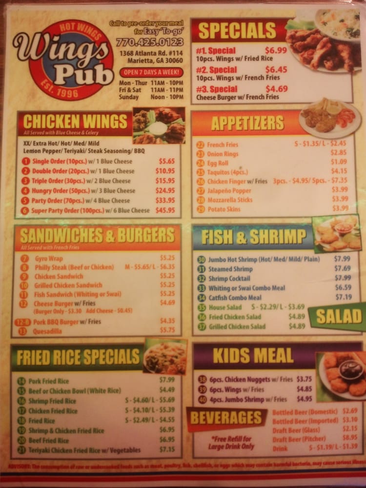 Wing Pub Menu (Update 2025)